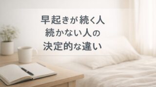 「早起きしよう」と何度も決意したのに、気づけば三日坊主。そんな経験、ありませんか? 一方で、特別ストイックに見えないのに、淡々と早起きを続けている人もいます。 この違い、実は意志力や根性の差ではありません。 この記事では...