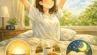 早起き なぜ目覚ましで起きるのはつらいのか 朝、目覚ましの音で目が覚める。けれど、身体は重く、心はまだ眠りの中にいるような感覚。 「もう少しだけ…」と布団にくるまり、気づけば時間が過ぎてしまう。 そんな朝を、何度も繰り返していませんか。 目覚ましで起きるという行為は、本... 2026.04.16 早起き