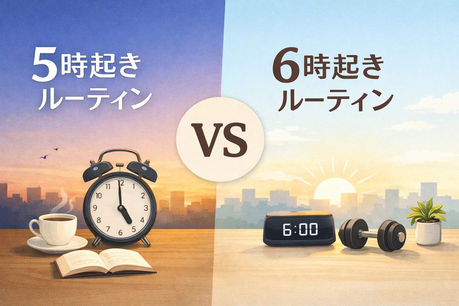 5時起きルーティンと6時起きルーティンを比較しながら、